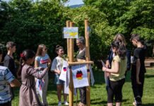 Im Video ist zu sehen, wie sich der Schriftzug von links nach rechts wie eine La-Ola-Welle in Bewegung setzt, während im Hintergrund die Stille lediglich durch das rhytische Schlagen eines Herzens gebrochen wird. „Damit wollen wir deutlich machen, dass in dieser schrecklichen Zeit die Menschlichkeit nicht verloren gehen darf. Die hilflosen Menschen in der Ukraine sollen wissen, dass wir an sie denken und dass sie nicht alleine sind“, erklärt eine weitere an der Aktion beteiligte Schülerin.