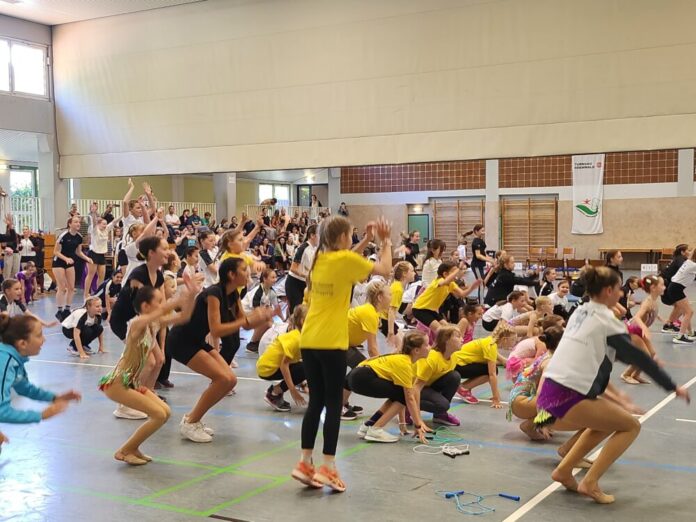 Die Wettkämpfe in der Gymnastik und Rope Skipping starteten um 9 Uhr in der Großsporthalle mit einer gemeinsamen Aufwärmung.