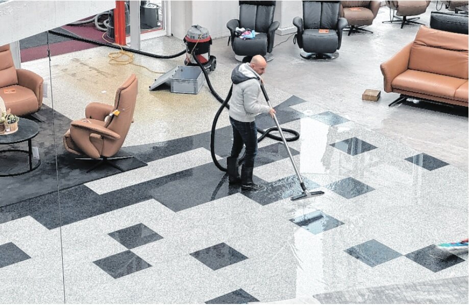 Mehrere tausend Liter Wasser hatten sich während der Nacht unkontrolliert den Weg durch das ganze Möbelhaus gebahnt.