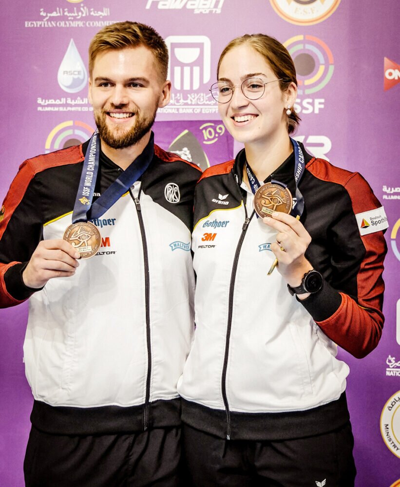 Die Bronzemedaille von Anna Janßen & David Koenders im Dreistellungskampf-Mixed war bereits die siebte Team-Medaille für das DSB-Team in Kairo.