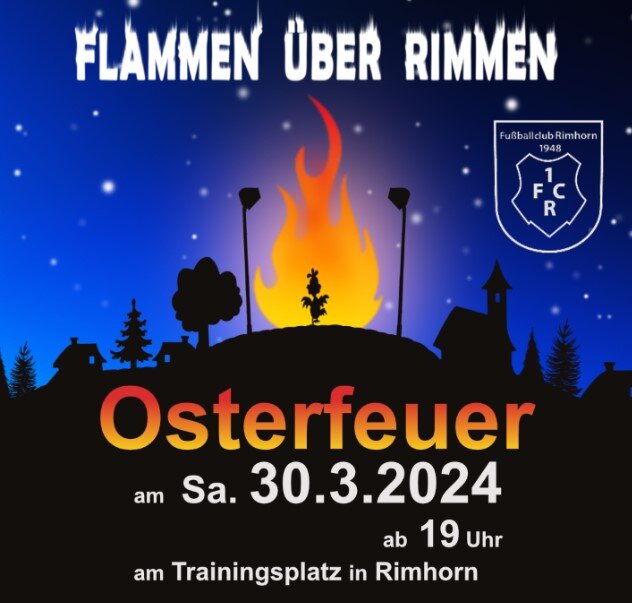 Lützelbach. Der 1. FC Rimhorn lädt zum traditionellen Osterfeuer am Samstag, 30. März, ab 19 Uhr ein.