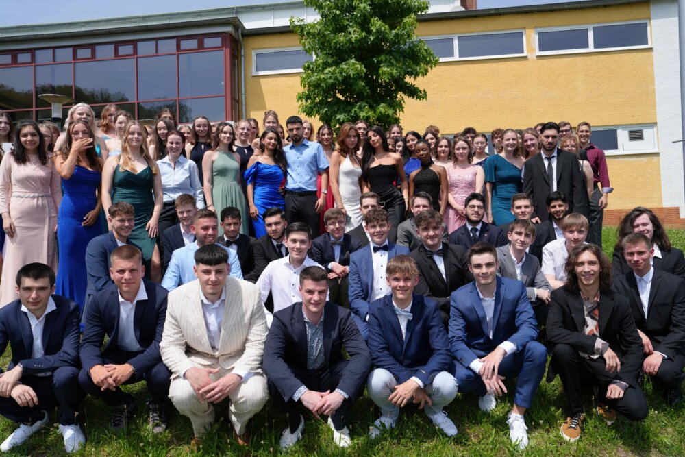 Bürgermeister Jens Fröhlich zeichnete nach den Grussworten die sechs Jahrgangsbesten aus. Sophie Haase, Johanna Fischer, Helen Hoffmann, Chiara Görner, Jule Ehrhard und Alicia Krauß erreichten mit der Note 1,0 den bestmöglichen Abiturschnitt.