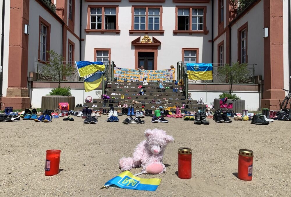 Es handelt sich um eine Aktion des Jugendcafés Dieburg : „Mit jedem Paar Schuhe wollen wir symbolisch eines Kindes gedenken, das seit Beginn des russischen Angriffskrieges in der Ukraine verstorben ist“, erläutert Olesya Wowes von der Jugendförderung die spontane Idee, die ihr und mehreren ukrainischen Frauen gekommen war. 483 Kinder sollen dort seit Kriegsbeginn getötet worden sein, zitiert Wowes aktuelle Zahlen der ukrainischen Regierung. Stand 30. Mai.