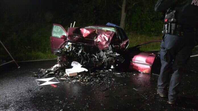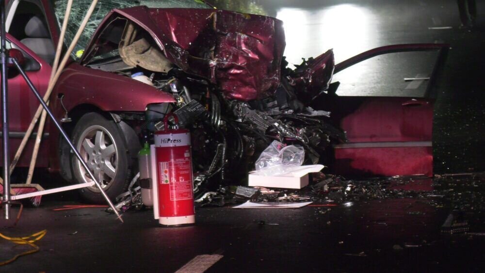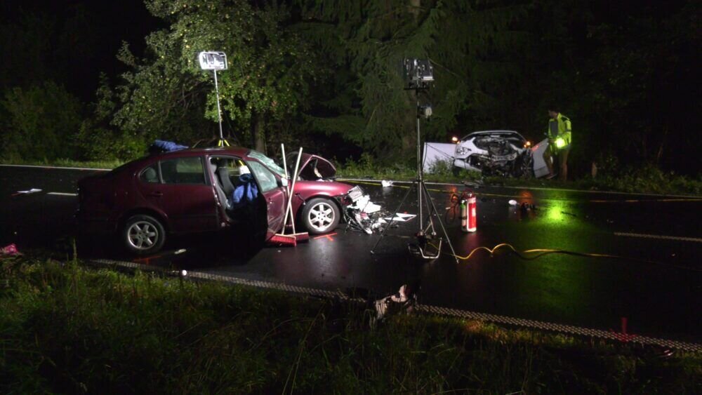 Zwei Tote und eine schwerstverletzte Person sind das Ergebnis eines tragischen Verkehrsunfalls, der sich am frühen Montagabend gegen 19.50 Uhr auf der Landstraße 3199 zwischen Wächtersbach und Bad Orb (Kreis Main-Kinzig) ereignete. Aus bislang unbekannter Ursache geriet ein 91-jähriger Wächtersbacher Seat-Toledo-Fahrer auf dem Weg nach Bad Orb in den Gegenverkehr, streifte hierbei zunächst einen entgegenkommenden Opel und kollidierte im weiteren Verlauf frontal mit einem im Gegenverkehr nachfolgenden Ford.