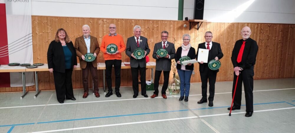 Für 60 Jahre Singen wurden Friedrich Wolf, Heinz Wilhelm, Ernst Krämer, Karl von Stein, Gerhard Krämer, Georg-Heinz Schwinn, Karl Baum und Bernhard Kramler geehrt.