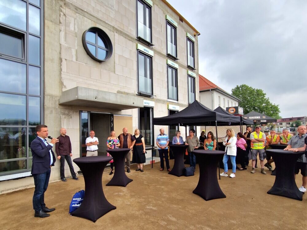 Groß-Umstadt. Eine Mehrfamilienhaus-Anlage mit neuem Energiekonzept, vier Gebäude, 39 Mietwohnungen. soll bis 2024 in Groß-Umstadt entstehen. Am 30. Juni lud der Bauträger, die Aschaffenburger Firma RD Wohnen, zum Richtfest und zur Baustellenbesichtigung in die Hans-Böckler-Straße 25 ein.