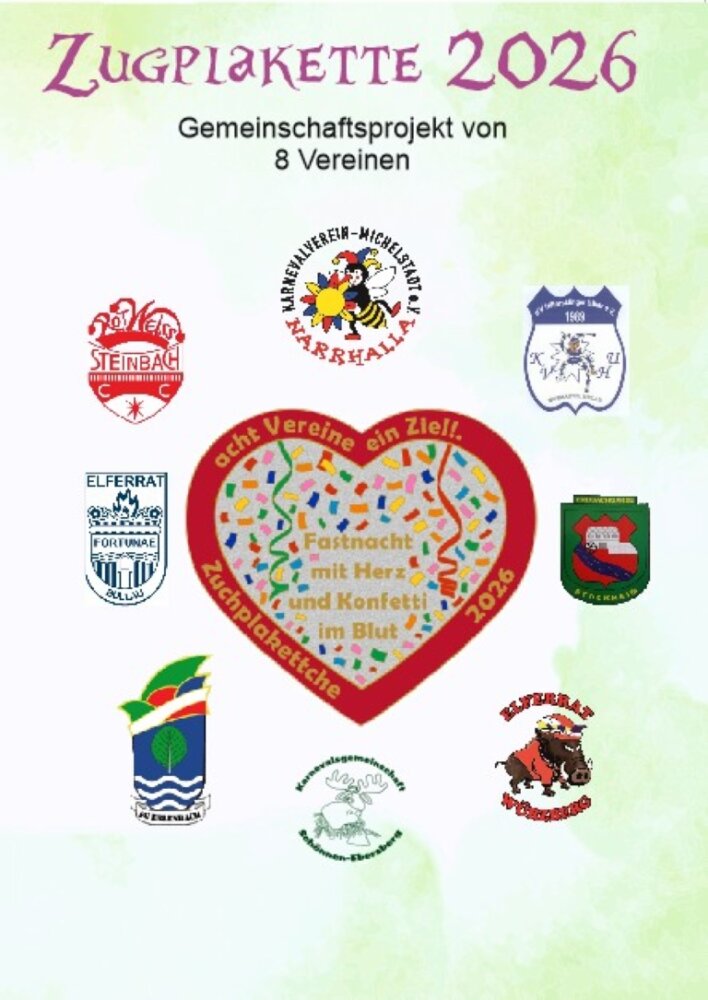 Die Plakette, mit deren Erlös insbesondere die Teilnahme vieler Musikgruppen finanziert wird, ist für drei Euro bei Veranstaltungen der beteiligten Vereine sowie in ausgewählten Michelstädter Geschäften und Gaststätten erhältlich. Neben dem KV Narrhalla beteiligen sich der CC Rot-Weiss Steinbach, die Hiltersklinger Ulker, die Erdbachgarde Stockheim, die Elferräte aus Würzberg und Bullau, die FG Erlenbach und die Karnevalsgesellschaft Schönnen-Ebersberg. red