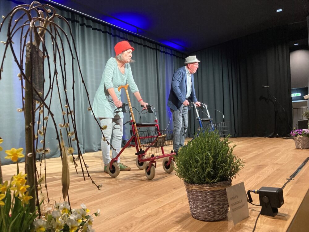 Das Duo Kabbaratz, bestehend aus Evelyn Wendler und Peter Hoffmann, unterhielt das Publikum mit scharfsinnigen Pointen und einer gelungenen Mischung aus Wahrheit und Absurdität. Ihr Programm zum Thema „Alte und Spinner“ wurde schlussendlich mit dem „Rollator-Rap“ gekrönt.