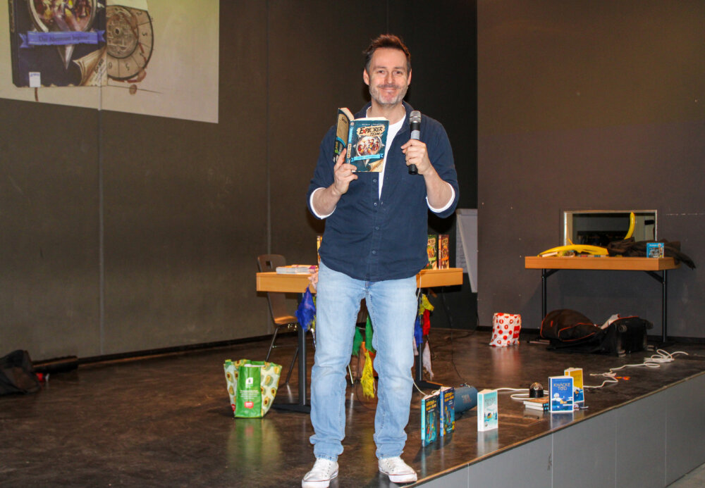 Reichelsheim. Der Jugendbuchautor Björn Berenz hat die Fünftklässler der Georg-August-Zinn-Schule Reichelsheim (GAZ) in seinen Bann gezogen. Am Donnerstag, 4. Dezember, gab er eine interaktive Lesung aus seiner Reihe „Explorer-Team – Das Abenteuer beginnt“. Der Autor vermittelte den Schülern mit Witz und Humor erste Einblicke in skandinavische Sprachen. Im Mittelpunkt stand dann die Geschichte um den Jungen Lias, der seinen verschollenen Vater sucht. Rätsel und Codes spielten dabei eine große Rolle. Berenz bezog die Kinder aktiv mit ein. Im Anschluss bot die Fürther Buchhandlung „Valentin“ an einem Büchertisch die Werke des Autors zum Kauf an. Dabei hatten die Schüler auch die Möglichkeit, sich ihre neuen Bücher persönlich signieren zu lassen. Rektorin Laura Zieres dankte dem Förderverein und der Sparkassenstiftung für die Unterstützung. red