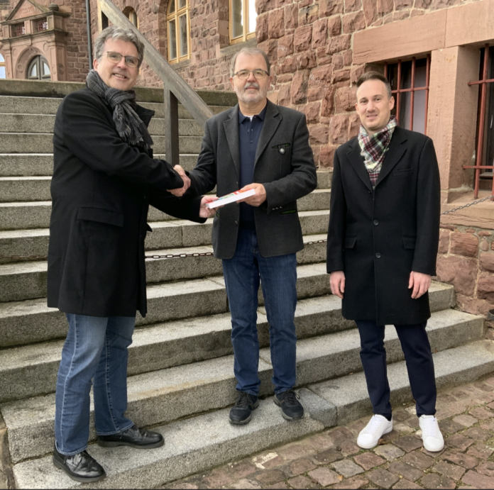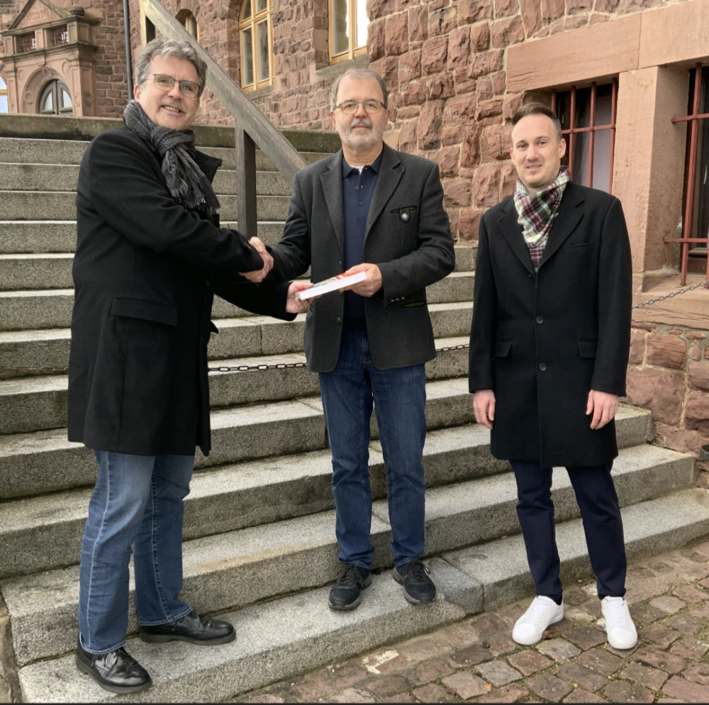 Auch Kreistagsvorsitzender Rüdiger Holschuh bedauert Kredels „zum jetzigen Zeitpunkt überraschenden Rückzug“ und erinnerte an viele Jahre gemeinsamer Arbeit im Kreistag. MdL Holschuh, der auch Vorsitzender des SPD-Unterbezirks Odenwaldkreis ist, überreichte Willi Kredel zum Abschied ein Buch von Horst Schnur, dem Landrat des Odenwaldkreises „bei deinem Dienstantritt im April 2006 im Odenwälder Kreistag“.