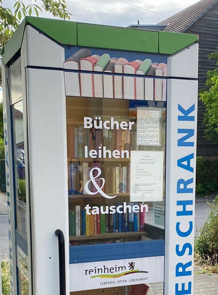Reinheim. Seit 2016 gibt es in Reinheim öffentliche Bücherschränke, die dazu gedacht sind, Bücher zu leihen, zu tauschen, einzustellen, diese mitzunehmen oder zu behalten.