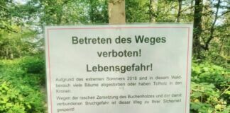 Betreten verboten! Waldabschnitte wegen hitzebedingtem Baumsterben gesperrt