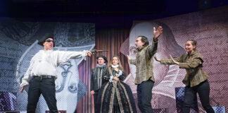 Auf der Theaterbühne steht “Plötzlich Shakespeare”
