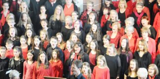 Kindertheater in rot: Eine Katze zieht einen Vogel groß