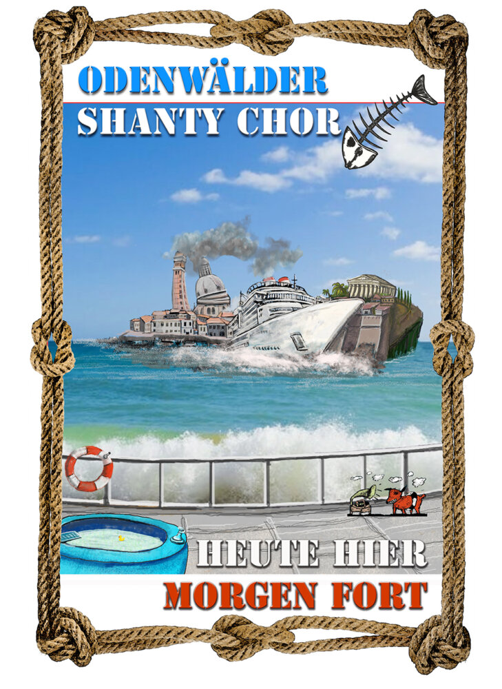 Für das neue Programm begibt sich der Shanty Chor am 5. April 2025 in der Rodensteinhalle Schafhofgasse 19, auf ein Kreuzfahrtschiff. Dorthin lädt “Prof. Dr. Alfons Netwohr” ein, um auf der „La Traviata“ den Passagieren die Erkenntnisse seines „Instituts für spekulative Heimatgeschichte“ zu den maritimen Traditionen des Odenwalds vorzutragen.