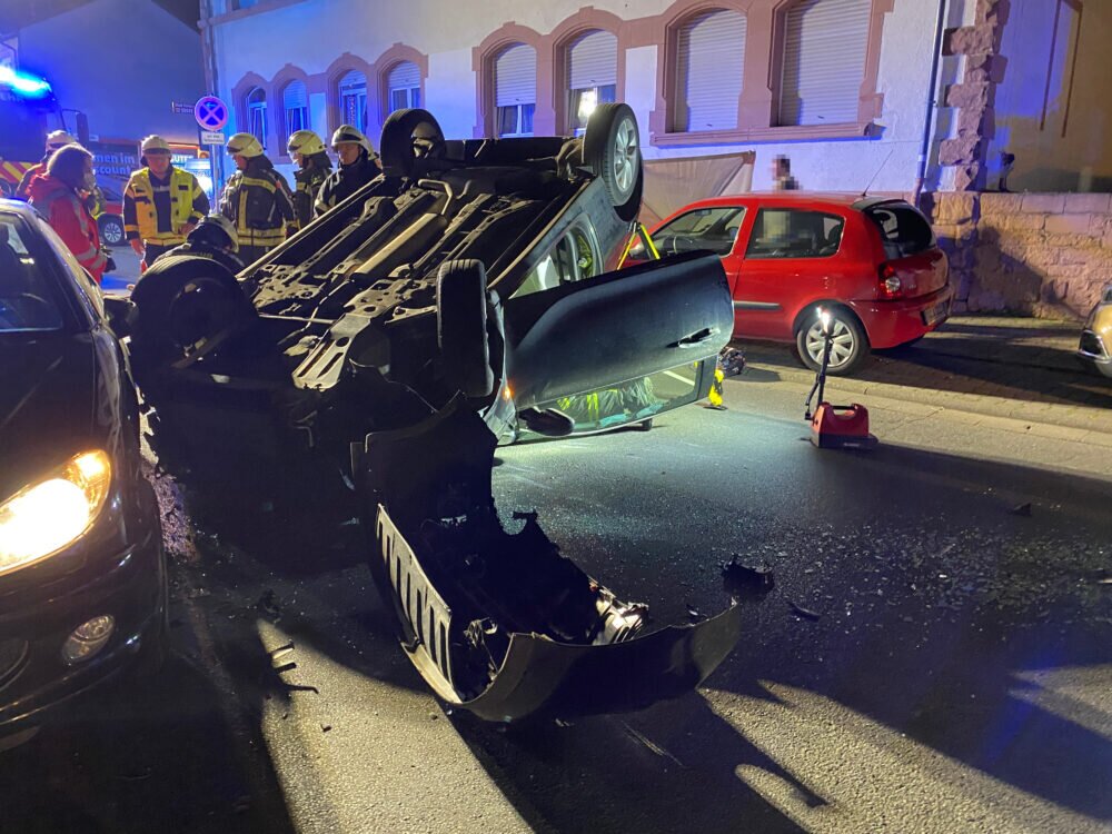 Eine 23-jährige Dieburgerin befuhr am Montag (10.10.), gegen 19.40 Uhr, mit ihrem Opel die Rheingaustraße in Dieburg in Richtung Stadtmitte, als sie aus noch ungeklärter Ursache nach rechts von der Fahrbahn abkam und gegen einen geparkten Renault fuhr. Durch die Wucht des Aufpralls wurde der Renault auf einen weiteren vor ihm stehenden Renault geschoben. Der Opel der Dieburgerin überschlug sich und prallte dabei gegen einen entgegenkommenden Peugeot. Darin saß ein 48-jähriger Mann aus Otzberg.