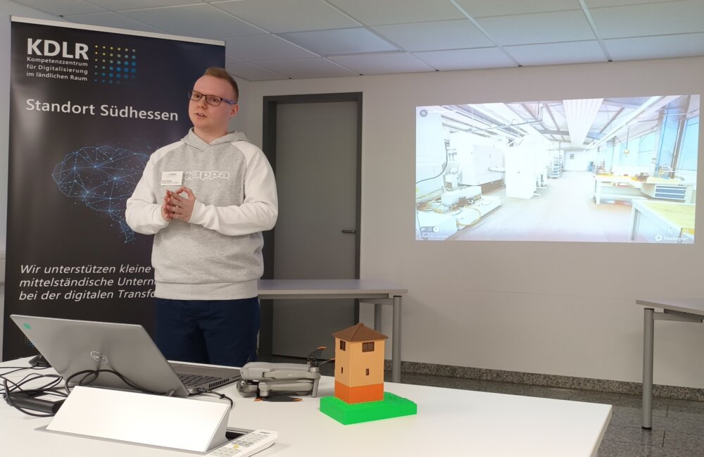Praxisnah wurde die Technik anhand regionaler Beispiele vorgestellt: die Orthopädie-Schuhtechnik Bischoff GmbH aus dem Gersprenztal, die Werkzeug- und Formenbau Vogel GmbH aus Oberzent sowie die Schreinerei Schlingmann aus dem Mümlingtal präsentierten ihre digital erfassten Betriebsstätten. Grundlage waren zuvor erstellte 360-Grad-Scans, die realitätsnahe virtuelle Rundgänge ermöglichen.