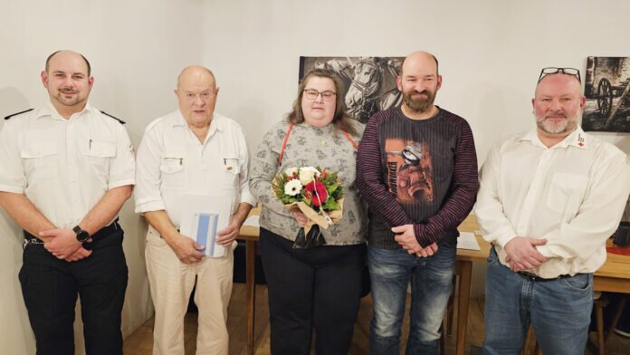 Denise Watermann wurde für fünf Jahre Mitgliedschaft in der DRK-Bereitschaft geehrt, Marina Meyer für zehn Jahre. Nadine Breithaupt ist 30 Jahre an Bord, deren Ehemann Markus Breithaupt 40 Jahre.