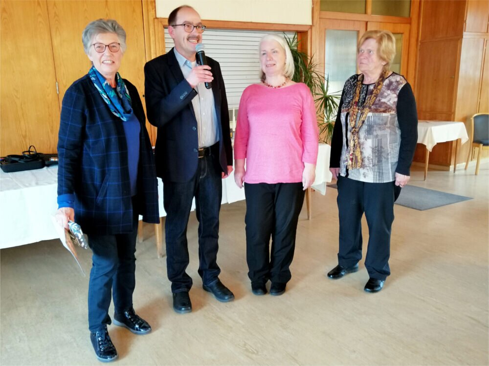 Foto: Für 25 Jahre Mitgliedschaft im Verein für Heimatgeschichte Höchst wurden unter anderen Elisabeth Klein (rechts) und Doris Richter (2. von rechts) durch den Vorsitzenden Detlef Röttger und die stellvertretende Vereinsvorsitzende Ursula Pfliegl geehrt. Foto: Verein für Heimatgeschichte