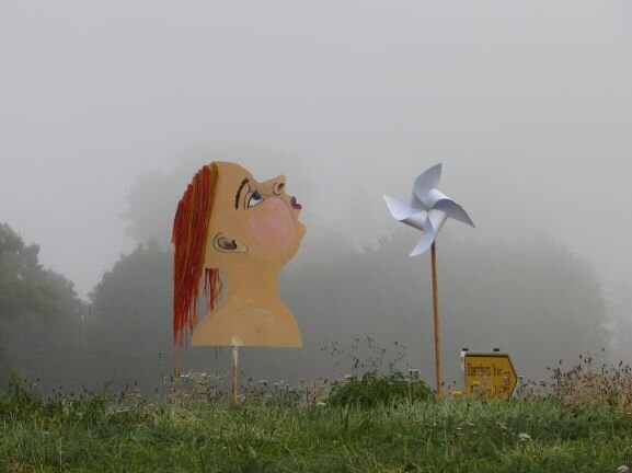 Ein Zeichen für die Windkraft setzen wollten die Initiatoren mit der Figur, die noch bis zum Donnerstag zwischen 9 und 12 Uhr auf dem Kreisel auf der B 426 beim Rewe in Höchst stand. Seitdem fehlt von dem Kopf, der in ein Windrad bläst, jede Spur. Laut Hessen mobil hat die Straßenmeisterei das Kunstwerk nicht entfernt, auch Bürgermeister Horst Bitsch hat keine Informationen, dass von Seiten der Gemeinde etwas entfernt wurde.
