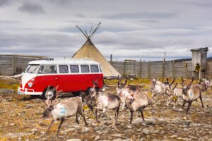 100 Kilometer vor St. Petersburg stoppten die russischen Grenzwächter die Weiterreise. Fotograf und Assistent nahmen den Weg über Finnland bis zum Eismeer und den Sami-Rentierzüchtern.