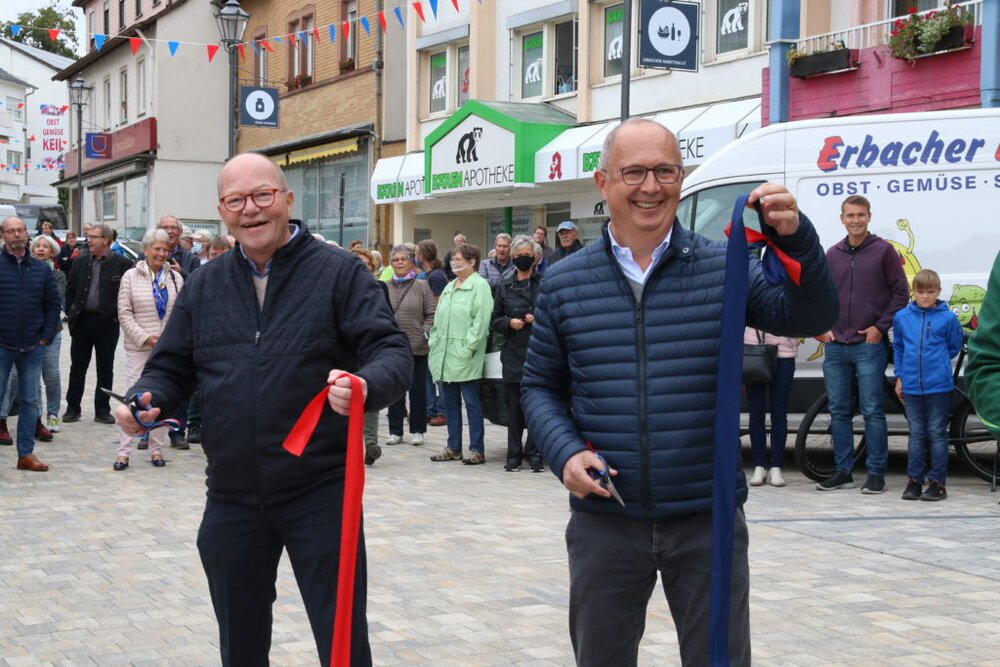 Mit zahlreichen Besuchern ist am heutigen Freitag die neue Hauptstraße in Erbach eingeweiht worden. “Heute ist ein guter Tag”, sagte Bürgermeister Dr. Peter Traub vor den Gästen. “Nach anderthalb Jahren Bauzeit ist unsere Hauptstraße endlich fertig geworden.” Gemeinsam mit dem Stadtbaumeister Martin La Meire, Martin Reitzel und Frank Schild vom Architekturbüro durchschnitt Traub das symbolische Band für die Eröffnung. Am morgigen Samstag findet genau an der Hauptstraße ein langer Einkaufstag statt mit vielen Aktionen und besonderen Angeboten. sab