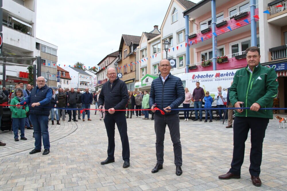 Mit zahlreichen Besuchern ist am heutigen Freitag die neue Hauptstraße in Erbach eingeweiht worden. “Heute ist ein guter Tag”, sagte Bürgermeister Dr. Peter Traub vor den Gästen. “Nach anderthalb Jahren Bauzeit ist unsere Hauptstraße endlich fertig geworden.” Gemeinsam mit dem Stadtbaumeister Martin La Meire, Martin Reitzel und Frank Schild vom Architekturbüro durchschnitt Traub das symbolische Band für die Eröffnung. Am morgigen Samstag findet genau an der Hauptstraße ein langer Einkaufstag statt mit vielen Aktionen und besonderen Angeboten. sab