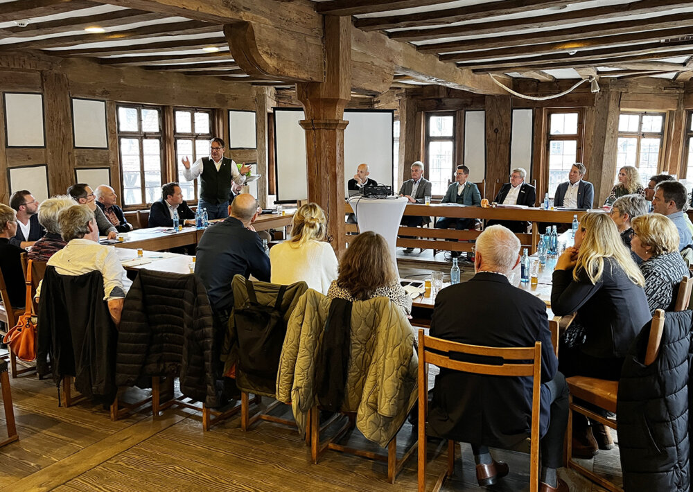 Der Vorsitzende von Cittaslow Deutschland, Manfred Dörr aus dem rheinlandpfälzischen Deidesheim, Bürgermeister Dr. Tobias Robischon sowie Vertreter der sechsköpfigen Lenkungsgruppe von Cittaslow Michelstadt hießen am ersten Abend die Vertreter aus 14 Mitgliedskommunen aus ganz Deutschland im Stadtmuseum willkommen.