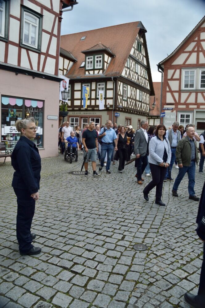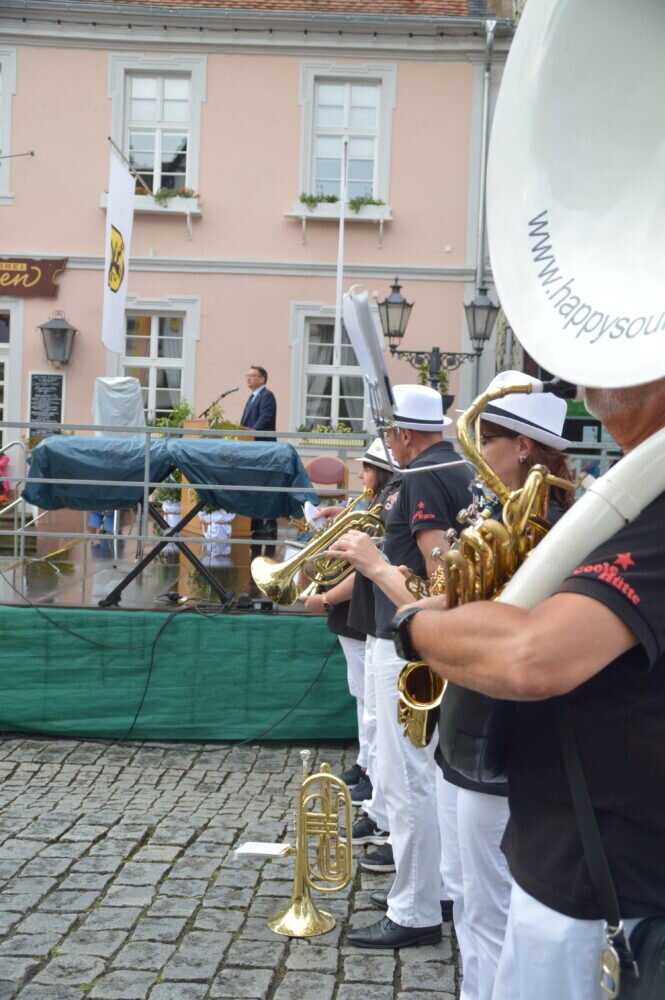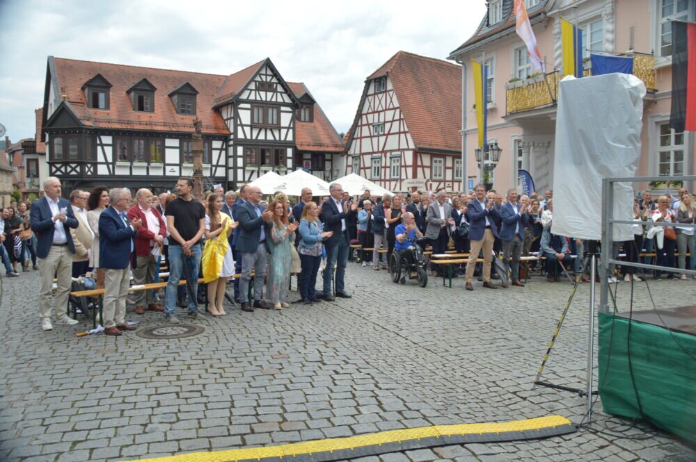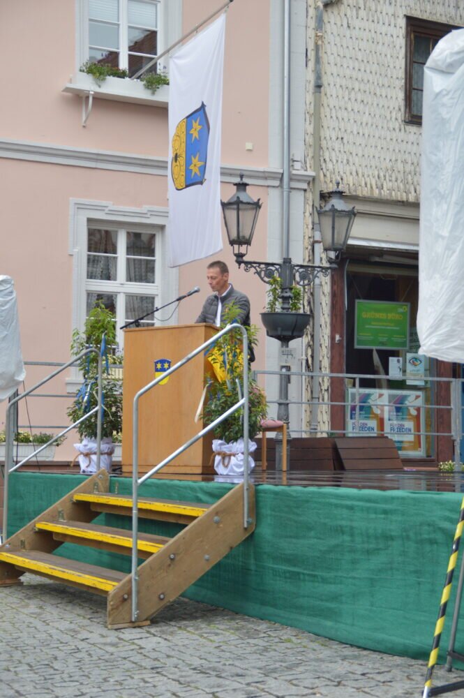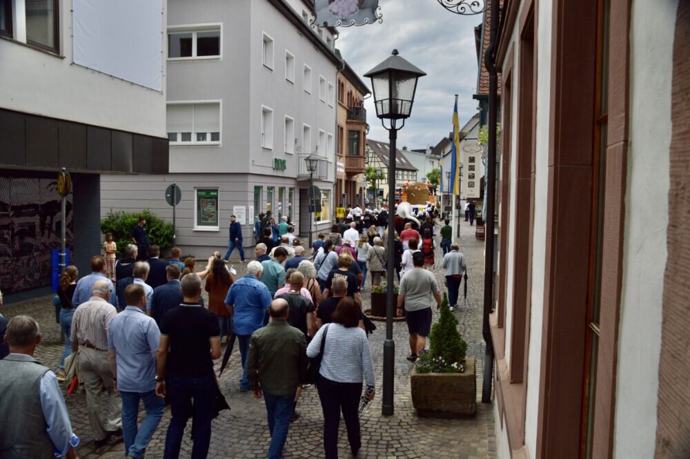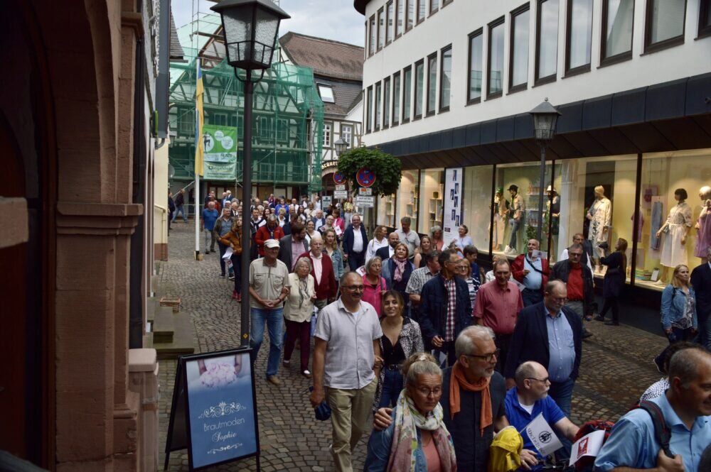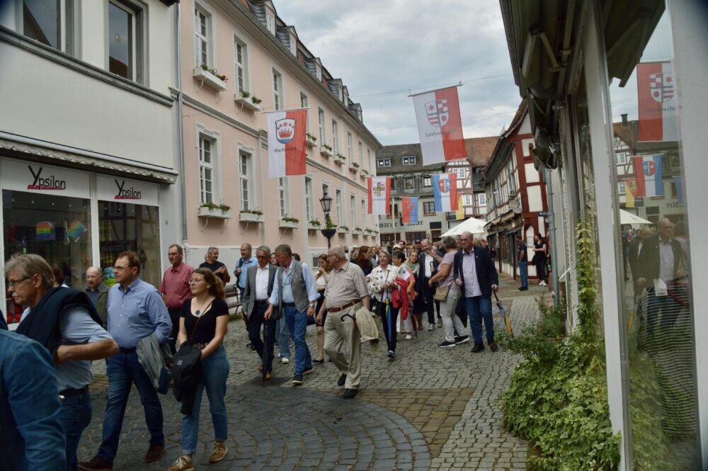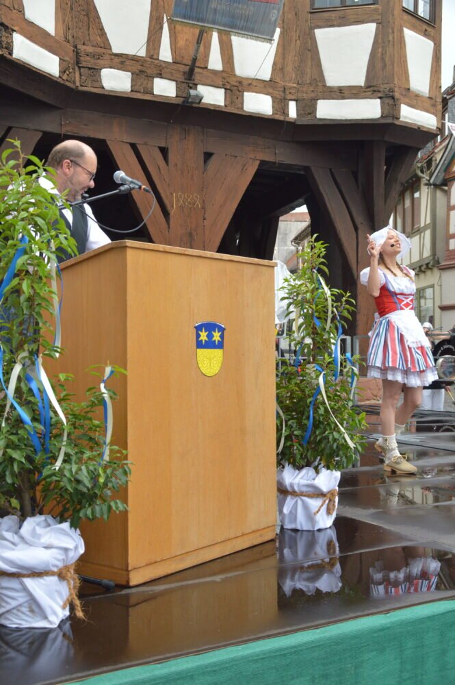 Michelstadt Bürgermeister Dr. Tobias Robischon dankte zu Beginn allen Beteiligten für die Zuversicht und das Vertrauen. „Es ist ein Fest für alle“, bewegten seine Worte. Auch betonte Robischon, dass in diesem Jahr die Michelstädter Farben blau-gelb Solidarität mit der Ukraine symbolisieren sollen.
