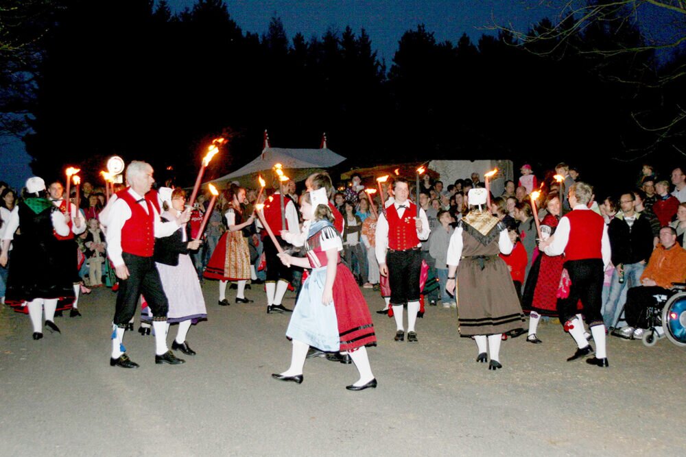 Um 19.30 Uhr startet am gleichen Punkt ein Fackelzug zum Feuerplatz. Dort angekommen wird die Trachtengruppe gegen 20 Uhr ihre Fackeltänze präsentieren. Um 20.15 Uhr wird das Lärmfeuer entzündet, das durch Böllerschüsse des Schützenvereins Beerfurth angekündigt wird. red