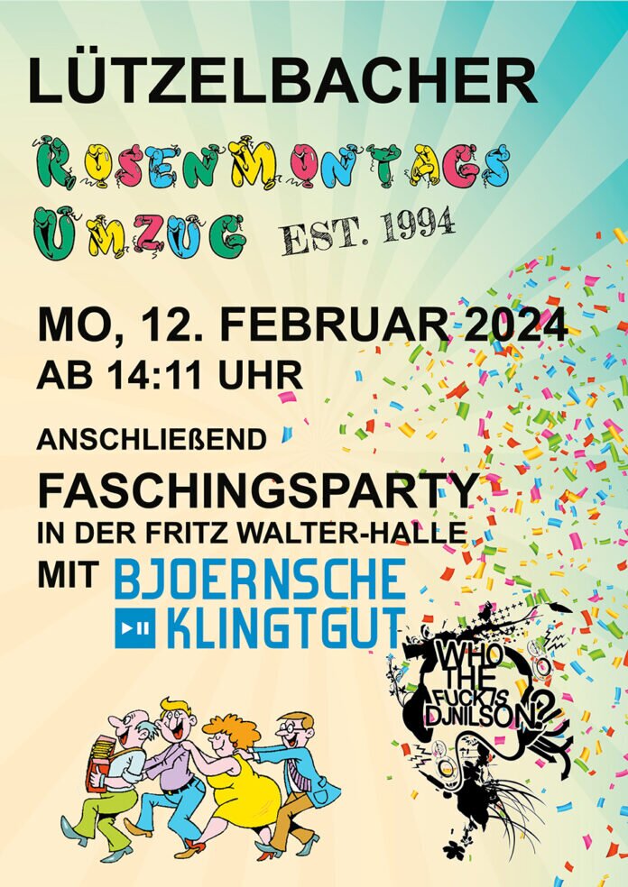 Zwei Tage vorher, am Samstag, 10. Februar, veranstaltet der Musikzug der Freiwilligen Feuerwehr Lützel-Wiebelsbach eine Faschingsparty in der Fritz-Walter-Halle. Die Live-Musik kommt von “Projekt 24” und Jessica Behrendt.