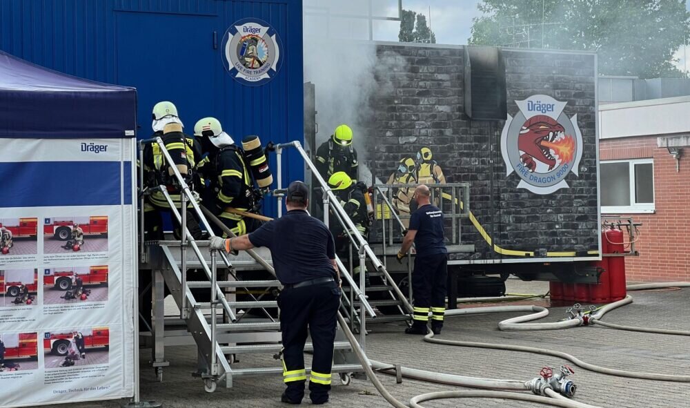 Die Durchgänge der mobilen Brandsimulationsanlage werden von erfahrenem Bedien- und Aufsichtspersonal begleitet, das für die Sicherheit der Teilnehmer und den reibungslosen Ablauf der Übungen sorgt.