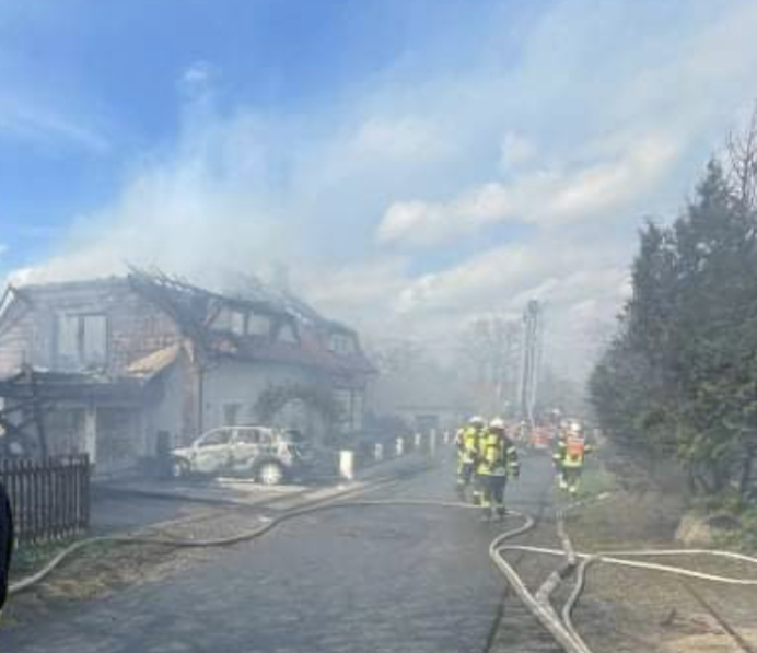 Die Einsatzkräfte der Feuerwehr haben den Brand mittlerweile unter Kontrolle. Die Löscharbeiten dauern gegenwärtig aber noch an.
