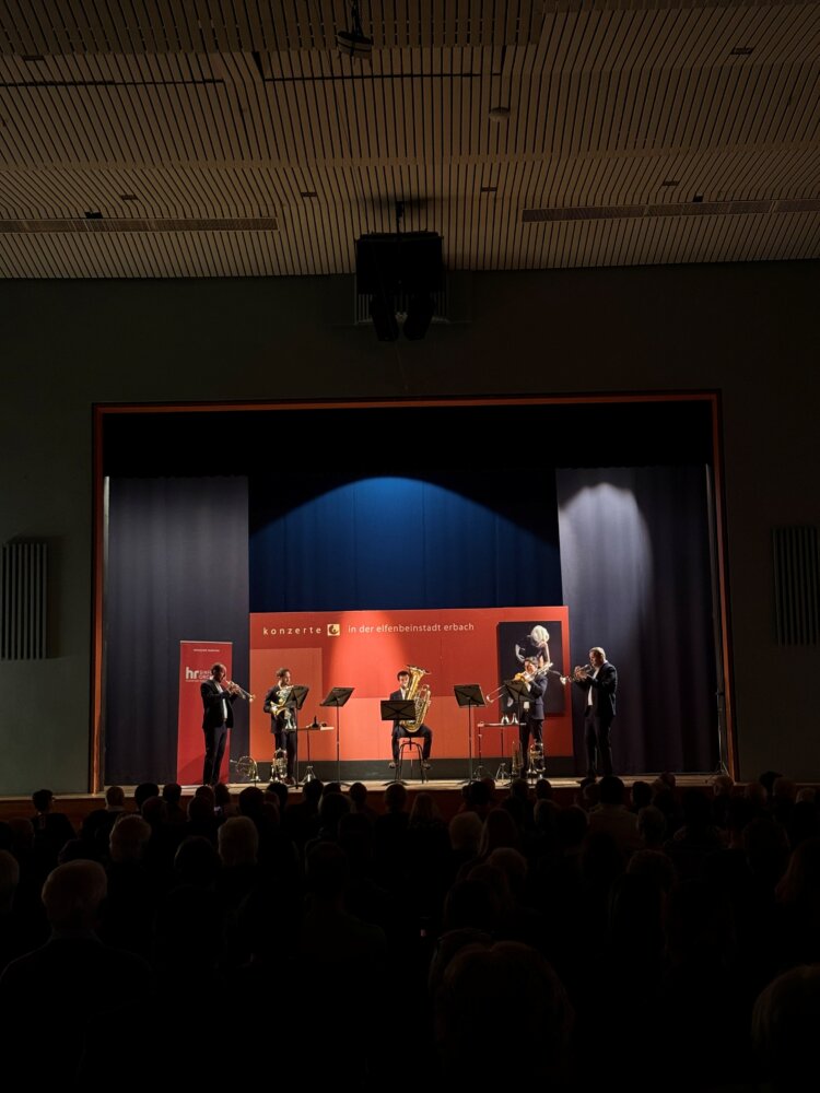 Erbach. Mit einem weihnachtlichen Blechbläserkonzert ist die erste Hälfte der Erbacher Konzertsaison zu Ende gegangen. Das Ensemble Frankfurt Radio Brass des hr-Sinfonieorchesters gastierte am Sonntag, 14. Dezember, in der Werner-Borchers-Halle. Vor rund 260 Zuhörern spielten die fünf Musiker unter anderem Werke von Kurt Weill und Enrique Crespo. In der zweiten Konzerthälfte stimmten sie mit Stücken wie „Jingle Bell Rock“ und „Let It Snow“ auf die Weihnachtszeit ein. Der tosende Applaus wurde mit zwei Zugaben belohnt. Die Kooperation mit dem hr-Sinfonieorchester wird in der nächsten Saison fortgesetzt. Karten für die zweite Saisonhälfte sind bei der Touristik-Information Erbach (Tel.: 06062/64-880, E-Mail: tourismus@erbach.de), an der Abendkasse und online erhältlich. Ein Einzelticket kostet 24 Euro, ermäßigt 12 Euro. Ein flexibles Mini-Abonnement für drei Konzerte wird ebenfalls angeboten. Weitere Auskünfte erteilt Christian Beisel unter der 06062/64-887 oder per E-Mail an konzerte@erbach.de. red