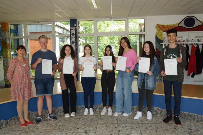 In diesem Jahr haben Waled Alhariri, Aleyna Altunbas, Sudenaz Ramadan, Marwan El Jazouli, Arya Namo, Tabea Paul, Meryem Ben Hamada und Philipp Hartmann ein DELF-Zertifikate erhalten. Abgelegt wurden dies in zwei verschiedenen Leistungsniveaus.