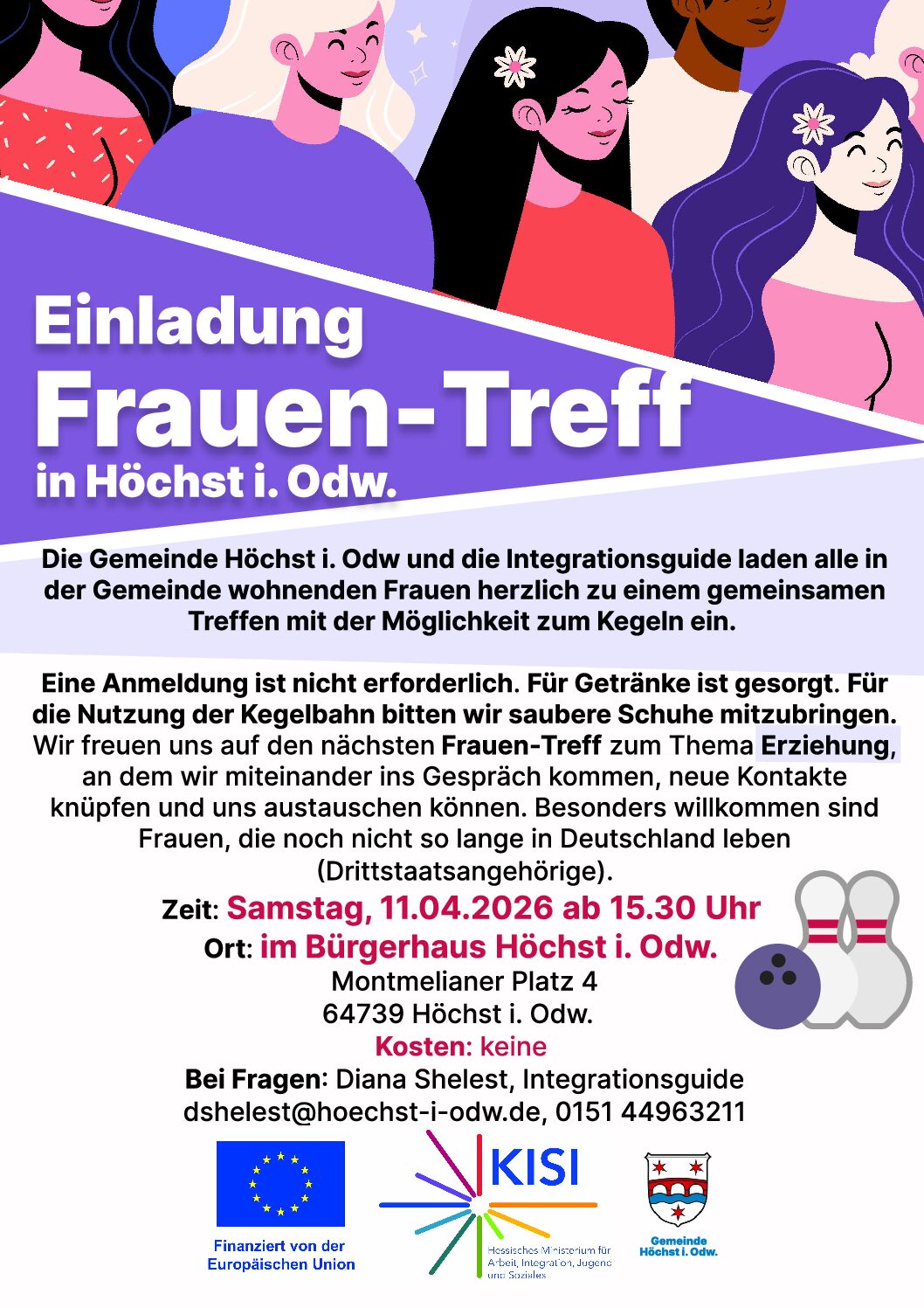 Das Angebot richtet sich besonders auch an Frauen, die noch nicht lange in Deutschland leben. Die Veranstaltung ist Teil des Förderprogramms KISI zur Stärkung der Integration und wird von der Europäischen Union sowie dem Land Hessen unterstützt. red