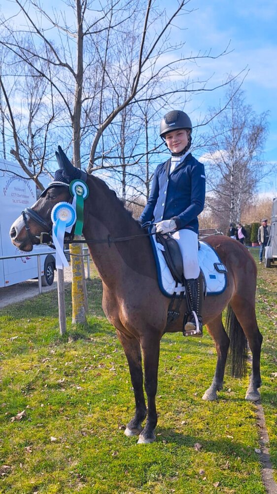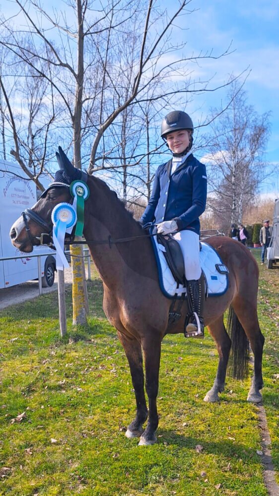 Joline Emmerichs Erfolgsserie begann in Groß-Zimmern, wo sie sich einen 3. Platz in der E-Dressur und einen 10. in der schwierigeren A-Dressur erreiten konnte. red
