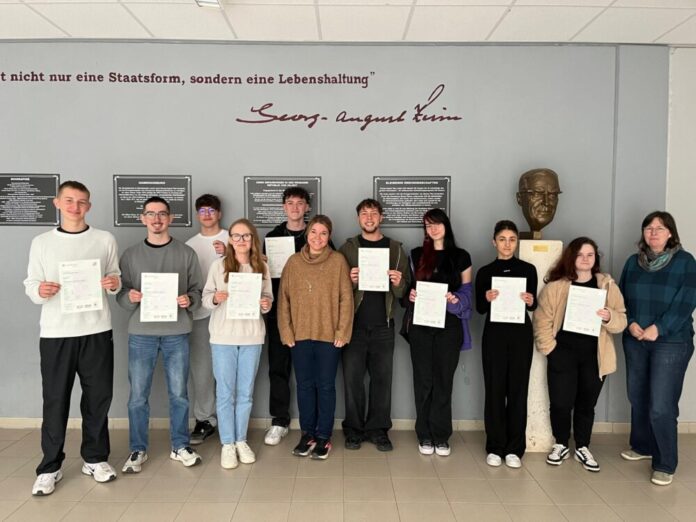 Die Prüfungen hatten die Schüler bereits im Juli an einem externen Institut abgelegt. Kursleiterinnen Nina Ohl und Constanze Angstenberger freuten sich, dass alle Teilnehmer die Prüfung bestanden und viele sogar ein höheres Niveau als erwartet erreicht haben. Aufgrund der positiven Ergebnisse wird das Angebot in den kommenden Schuljahren fortgeführt und ausgebaut. red