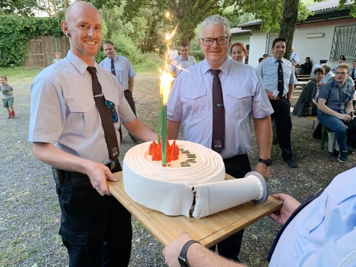 Eine Torte in Form eines Feuerwehrschlauches rundete den Abend ab.
