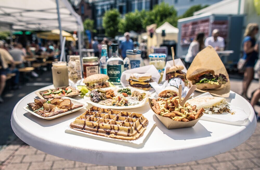 An den Ständen der Veranstaltung gibt es neben ausgewählten Wein- und Biersorten auch Leckereien von Imbißständen.