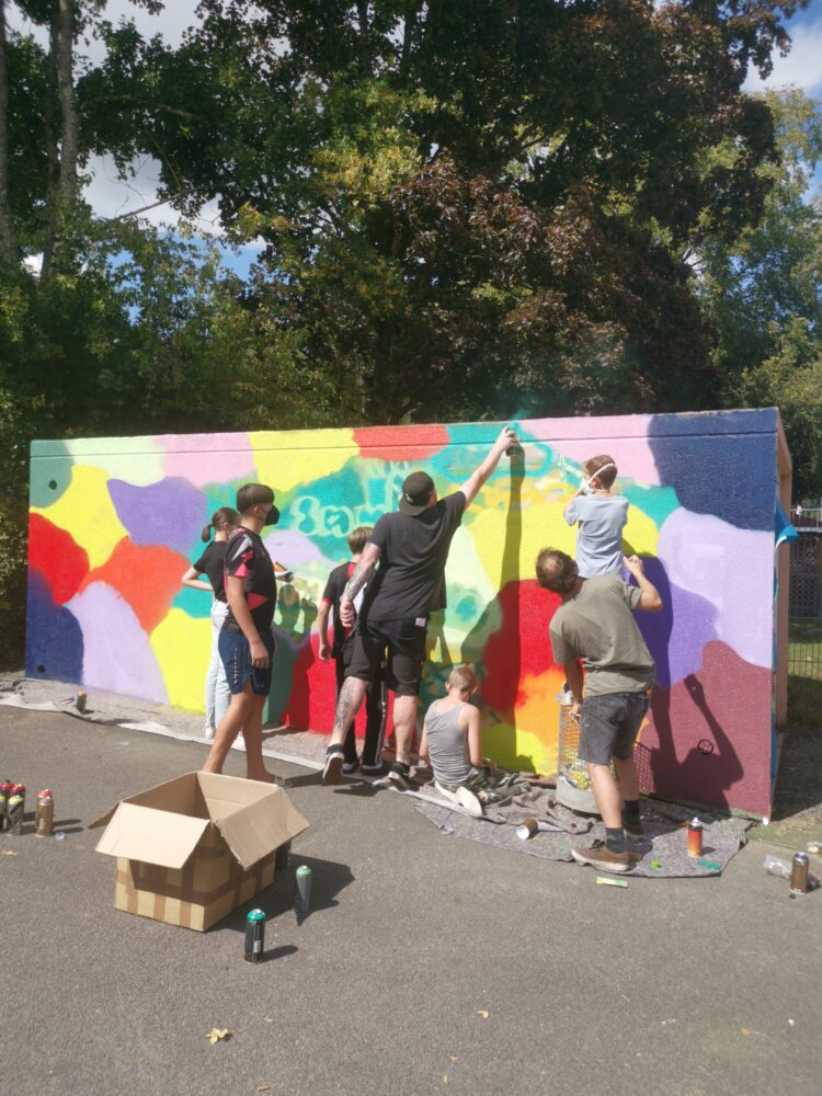 Jugendliche aus dem Gemeindegebiet Höchst gestalteten dort im Rahmen eines Graffiti-Workshops ein großflächiges Bild.