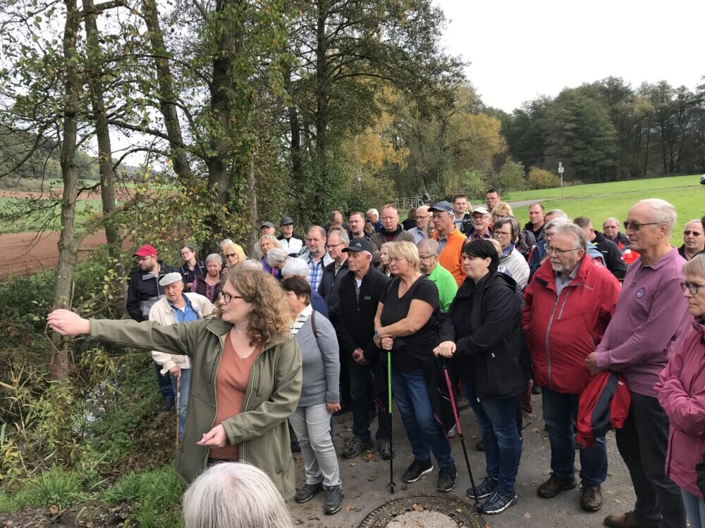 Vom Parkplatz „Hainamu“ ging es zum nahegelegenen jüdischen Friedhof, wo Gemeindearchivar Karl-Heinz Jungermann über die Gedenkstätte informierte. Weiter führte der Weg durch den Klosterwald, in dem der neue Revierförster Carl-Philip Weber über den aktuellen Zustand der heimischen Wälder und die Waldbewirtschaftung durch Hessen Forst im Gemeindewald berichtete und Fragen beantwortete. Weiter ging es zu einer Streuobstwiese, auf der Klaus Pankow Wissenswertes über den Apfelanbau erzählte und eine Kostprobe seines Streuobstwiesen-Apfelsaftes verteilte. Es folgten die Besichtigung des Biberbaus am Oberhöchster Bach, an dem die Kreisvorsitzende des Naturschutzbundes Odenwaldkreis, Martina Limprecht, die Wiederansiedlung des Bibers an den Gewässern verdeutlichte. Die letzte Etappe führte zum Feuerwehrstützpunkt Höchst, an dem es für die Teilnehmer abschließend Erbsensuppe aus der Gulaschkanone und heiße Würstchen gab. cly