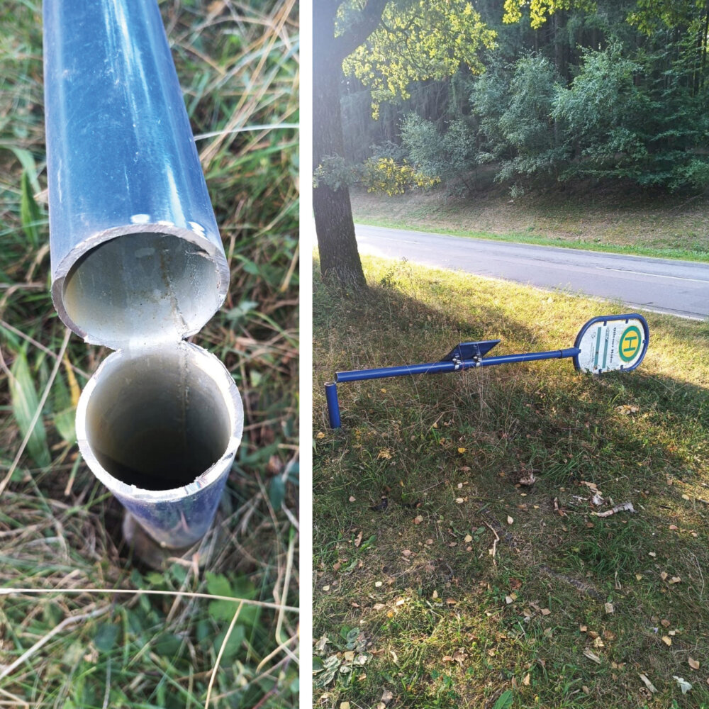 Oberzent-Olfen. Vermutlich zwischen Dienstagabend, 26., und Mittwochmorgen, 27. August, haben Vandalen das Haltestellenschild „Olfener Höhe“ zwischen Olfen und Airlenbach zerstört.