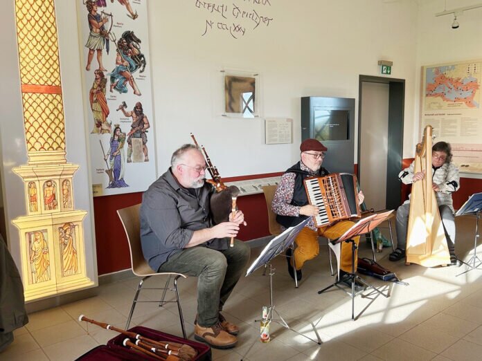 Burghard Horn mit Schäferpfeife, Hümmelchen und Flöte, Thomas Worch mit Akkordeon und Melodika und Sonja Kräher mit Harfe und Flöte musizierten und trugen klassische und volkstümliche Stücke aus Europa ebenso vor wie moderne Interpretationen.