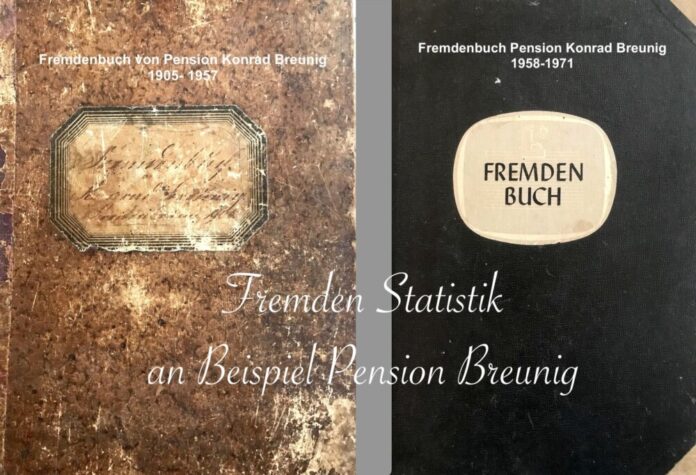 Als Quelle für umfangreiche Statistiken dienten ihm die Fremdenbücher der Pension Breunig und Eintragungen in der Gemeindechronik Breitenbrunn.
