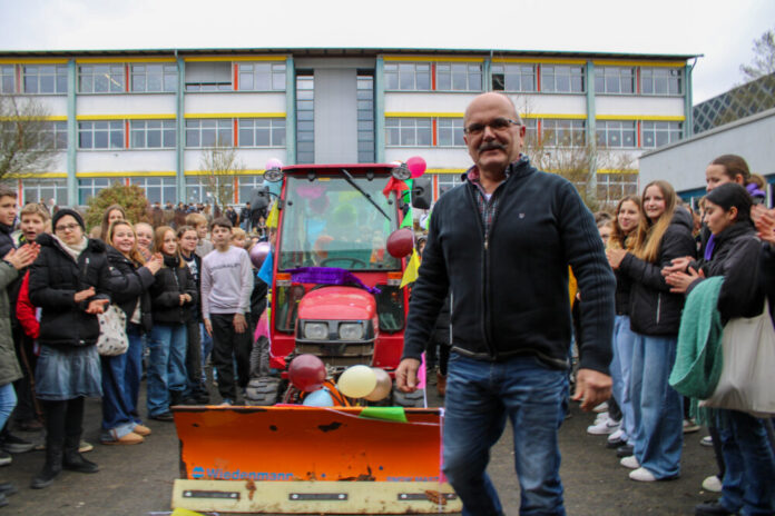 Am letzten Schultag vor den Weihnachtsferien bildeten die über 1000 Schüler ein Spalier, durch das „Herbert“, wie alle ihn an der GAZ nennen, mit seinem Hausmeistertraktor fuhr.