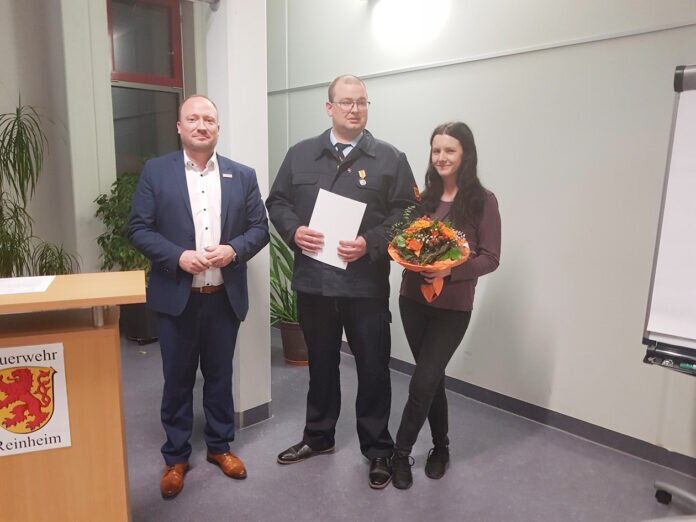 Reinheim. Für seinen Einsatz und die Rettung eines Menschen erhielt Patrick Schmitt im Rahmen der Jahreshauptversammlung der Freiwilligen Feuerwehr Reinheim in der vergangenen Woche die Hessische Rettungsmedaille aus den Händen von Bürgermeister Manuel Feick.