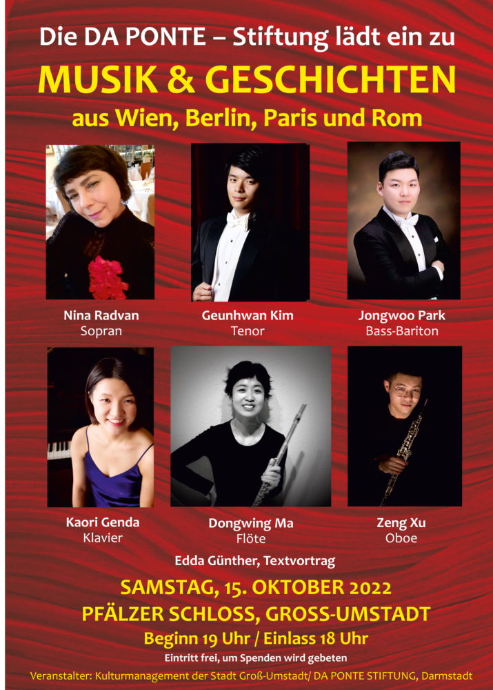 Musik und Geschichten aus Wien, Berlin, Paris und Rom werden am Samstag, 15. Oktober, um 19 Uhr im Pfälzer Schloss in Groß-Umstadt vorgetragen.