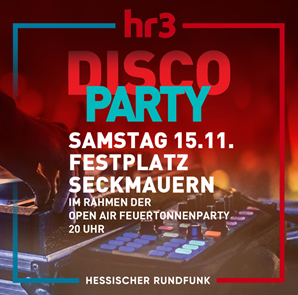 Lützelbach-Seckmauern. Am Samstag, 15. November, steigt auf dem Festplatz in Seckmauern die fünfte FeuertonnenParty des CCS Seckmauern – und diesmal mit prominenter Unterstützung: Das hr3-Team bringt die legendäre hr3 Discoparty in den Odenwald. Beginn ist um 20 Uhr, Einlass ab 19 Uhr.