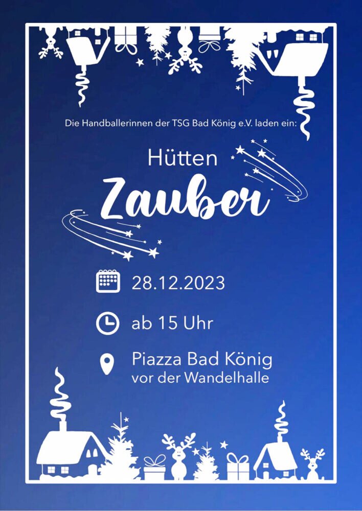 Bad König. Am Donnerstag, 28. Dezember, veranstaltet die Handballabteilung der Turnsportgemeinschaft ab 15 Uhr auf der Piazza vor der Wandelhalle den Bad Königer Hüttenzauber.